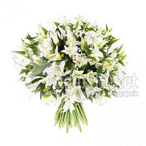 Букет из белых лилий создан для нежных, хрупких, но в то же время сильных духом женщин. Женщин, способных на подвиги ради любви.